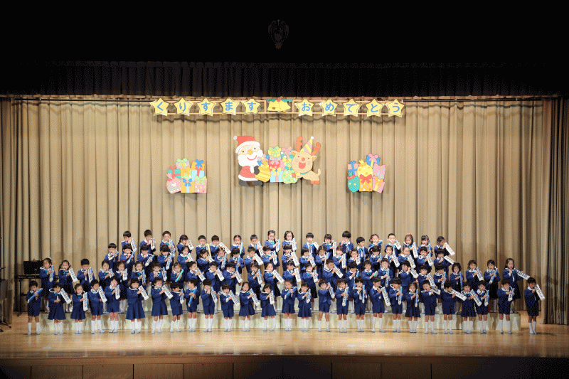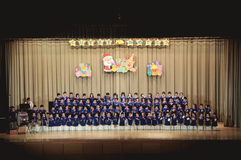 幕が開いた時は、少し緊張していた様子もありましたが、一曲目の『おしゃべりなクリスマス』では、大きな声で堂々と歌う姿が見られました♪また、2曲目の『むっくりくまさん』では、ダンスをしながら楽しく歌ったり、ピアノの音を聞きながら上手に鍵盤ハーモニカで演奏することが出来ました(*^_^*)
