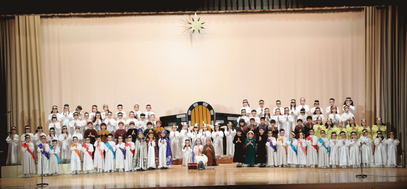各学年が、取り組んできたことを発表し、みんなでイエス様のお誕生をお祝いしました。