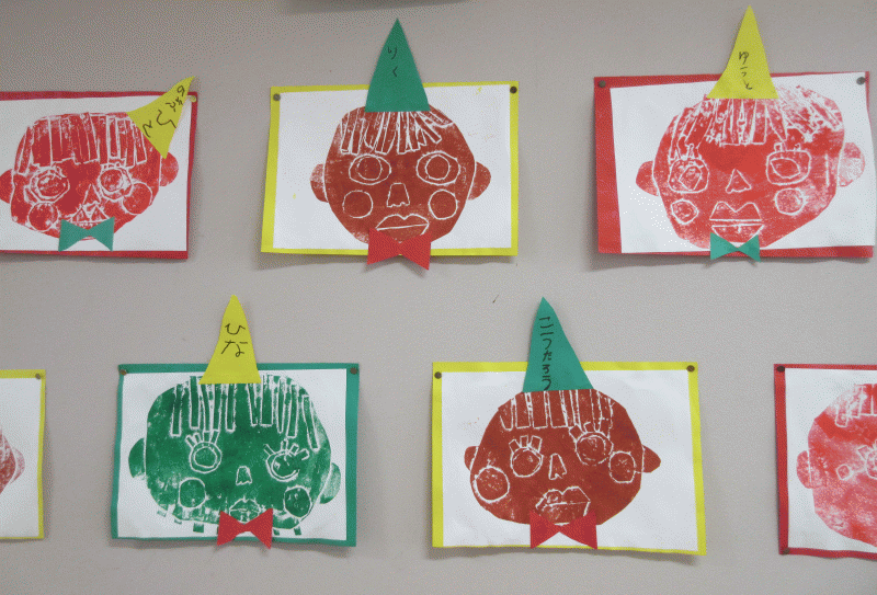目が前髪の上にあったり、唇が離れていたり…とても面白い顔がたくさんあって、子どもたちの笑い声も耐えませんでした\(^o^)/