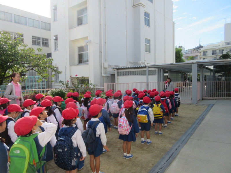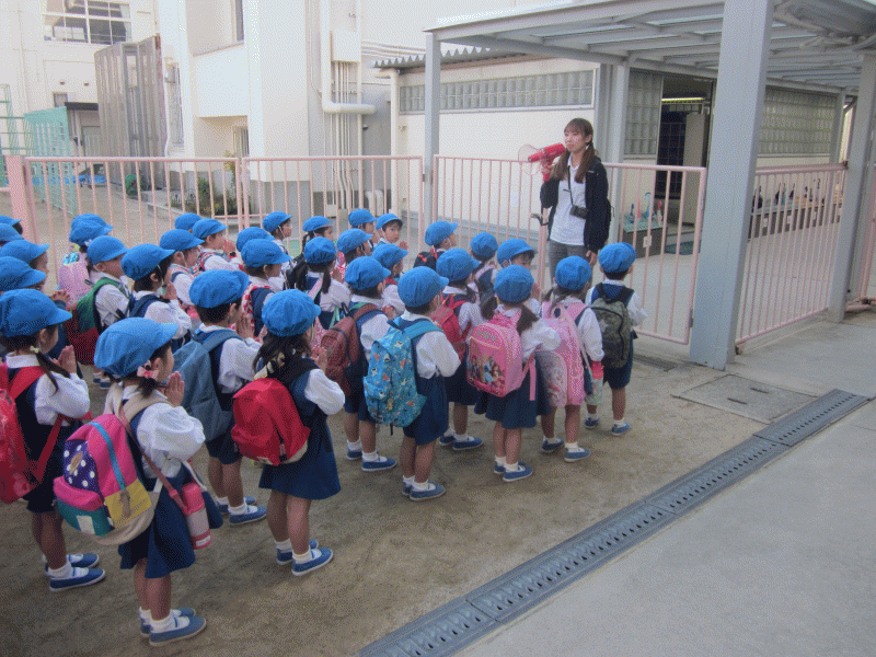 園庭でお祈りをして、園長先生のお話をいただいたら