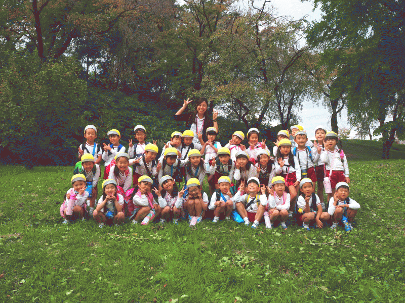 幼稚園の園庭の木々の葉っぱも綺麗に色付き、落ち葉で遊ぶ子どもたちの姿が見られています…(*^_^*)