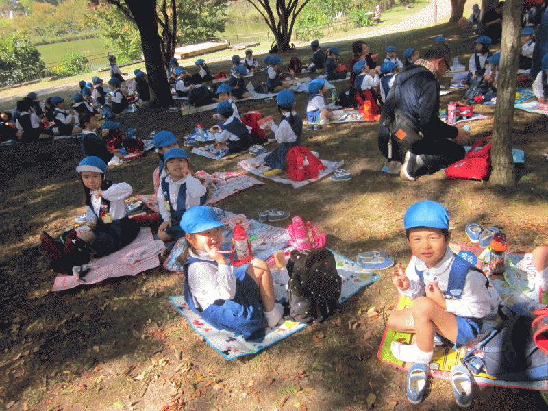 芋を掘った後は、隣の植物園でお弁当を食べました。