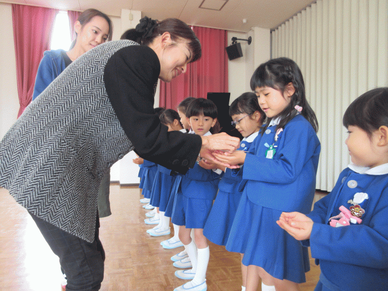 クラスの皆から名前を紹介され、園長先生からおメダイをいただきました。