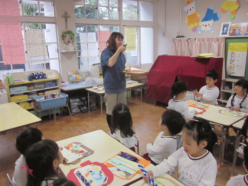 その後、神父様が大きな絵本を子どもたちに見せてくださり、お話をしてくださいました。