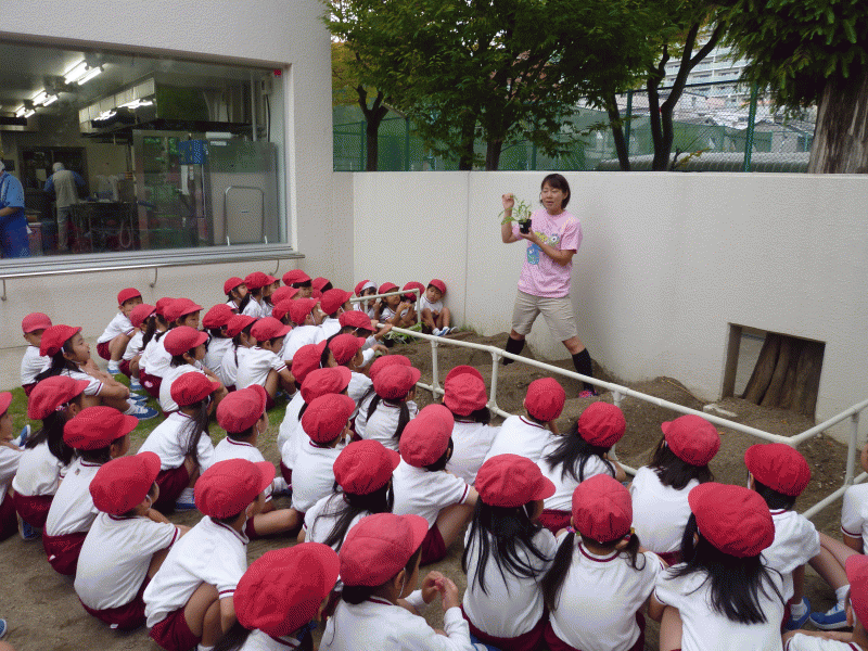 ブロッコリーと白菜の苗を見た子ども達は