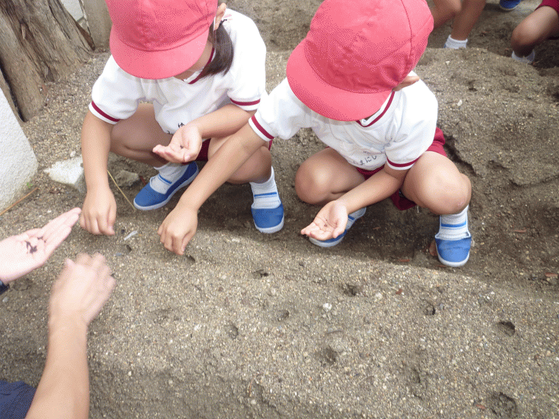 みんなで鬼ごっこをしたり、虫さがしをしたりして遊びました。