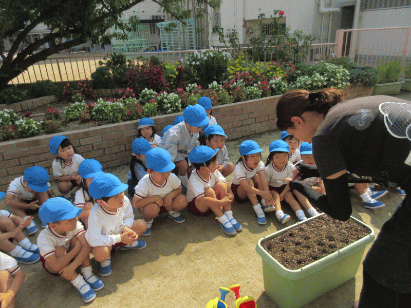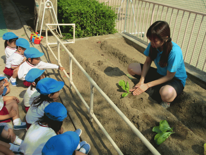 年中組は、水菜の苗とカブの種を植えました!!