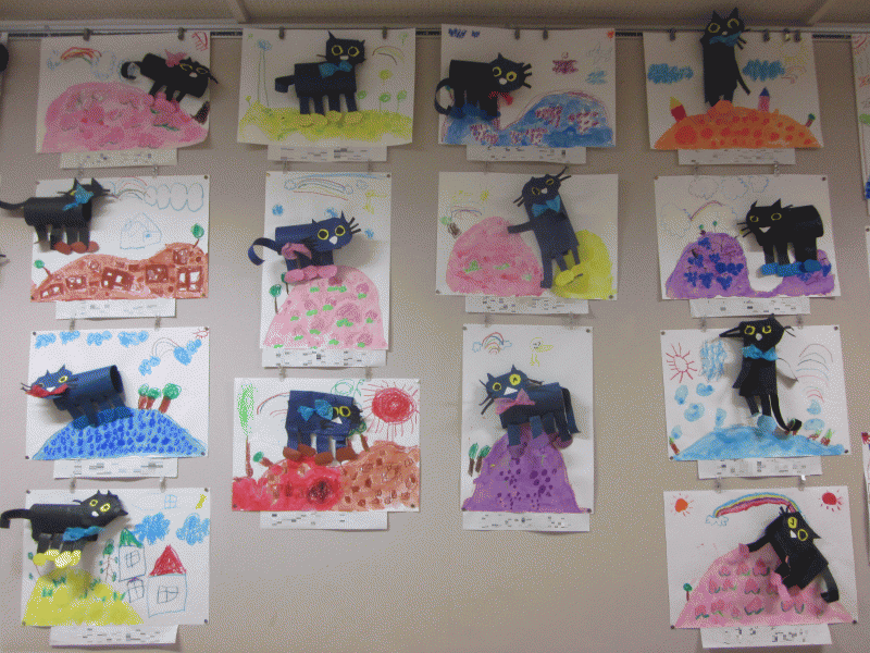 年中組の10月壁面は、お話絵「ねこのピート」です!!