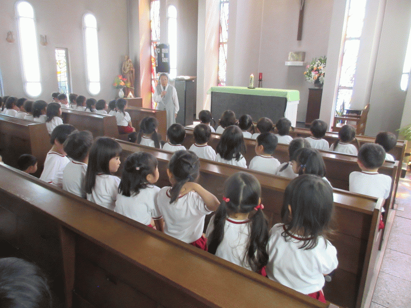 歌のプレゼントのあと、園長先生にマリア様のおメダイをいただきます(*^_^*)