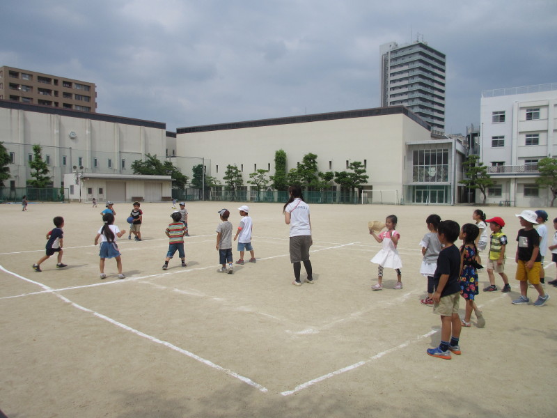 戸外では、鬼ごっこやドッヂボールをして遊びました☆