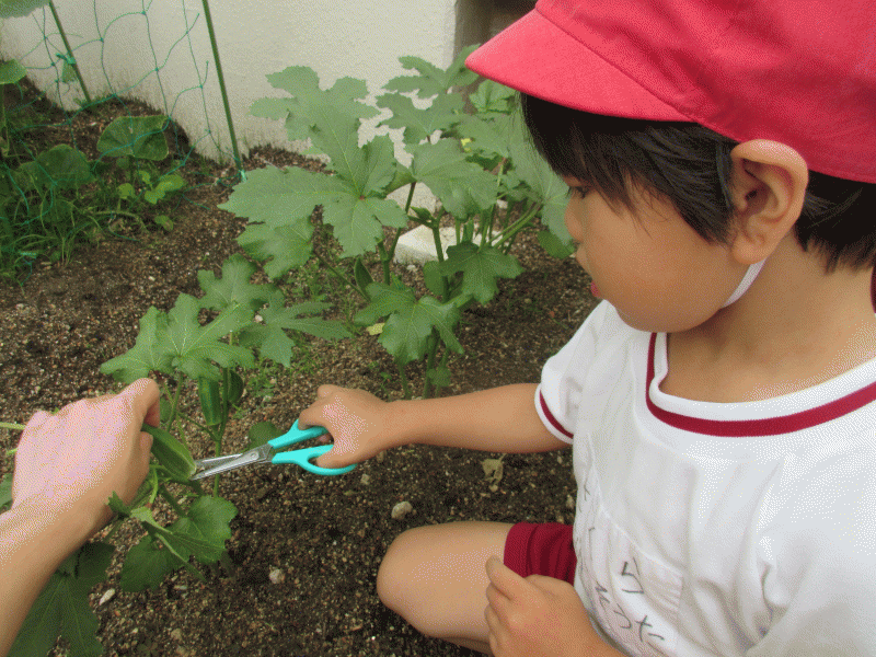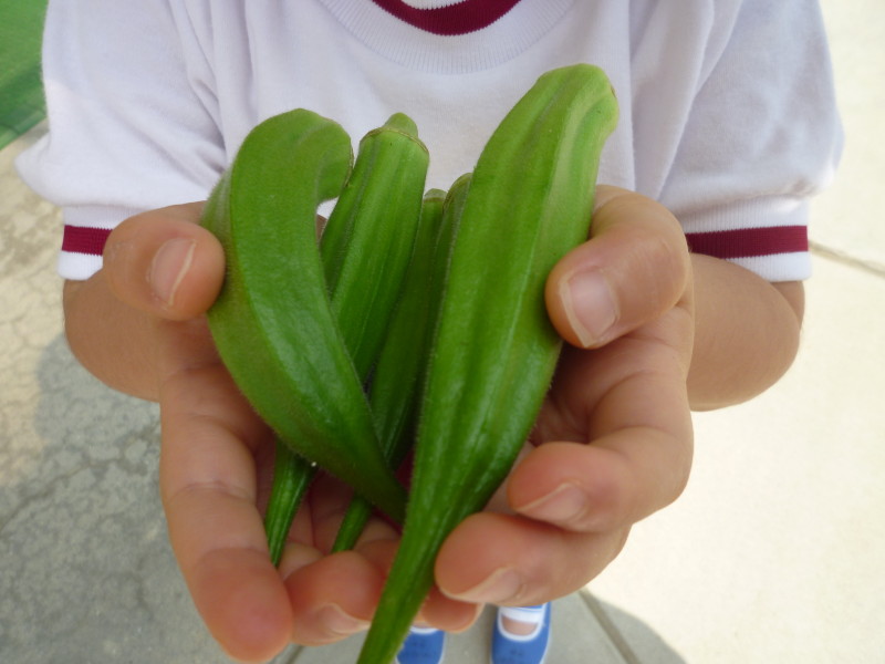☆オクラを収穫しました〜年中組〜☆