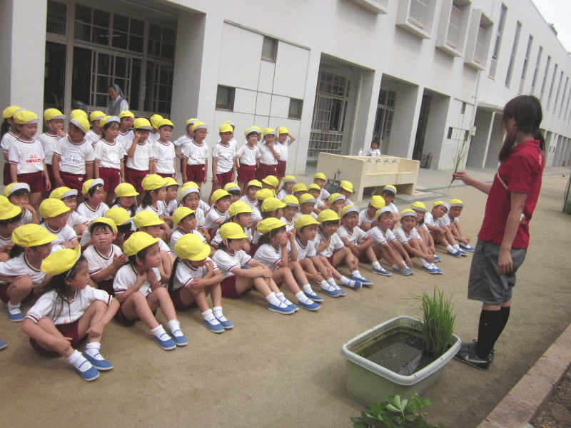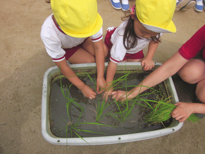 稲の苗をいただいたので、年長組のみんなで植えました(^O^)