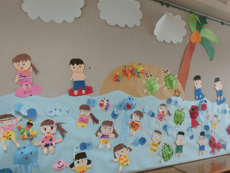 年長組7月壁面は「うみのせかい」