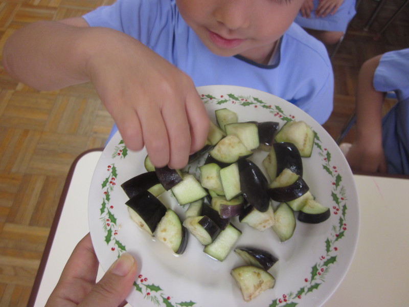 塩で味付けをしたナスをみんなで頂きました。