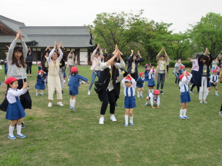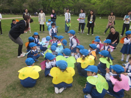 最後は、ちょうちょさんになって真ん中に集まり、目を隠してチューリップのお歌を大熱唱♪