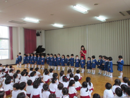 まずは、誕生日のお友達が前に並んで、クラスのお友達に
