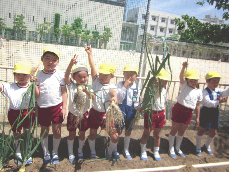 子どもたちは、玉葱の根本をしっかり掴んで