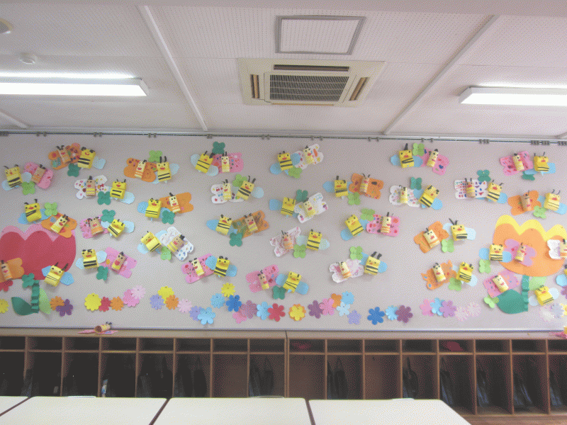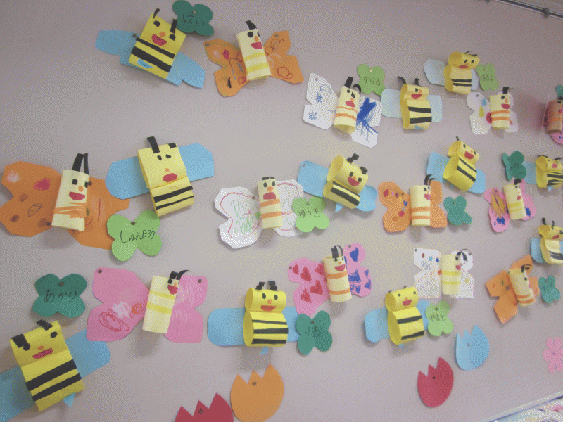 年中組の5月の壁面は、ちょうちょとみつばちを作りました♪♪