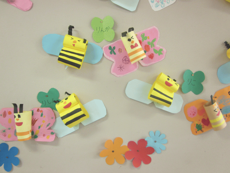 ちょうちょとみつばちの体は、紙製作で立体に仕上げました(^^☆