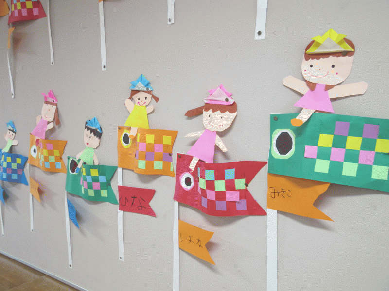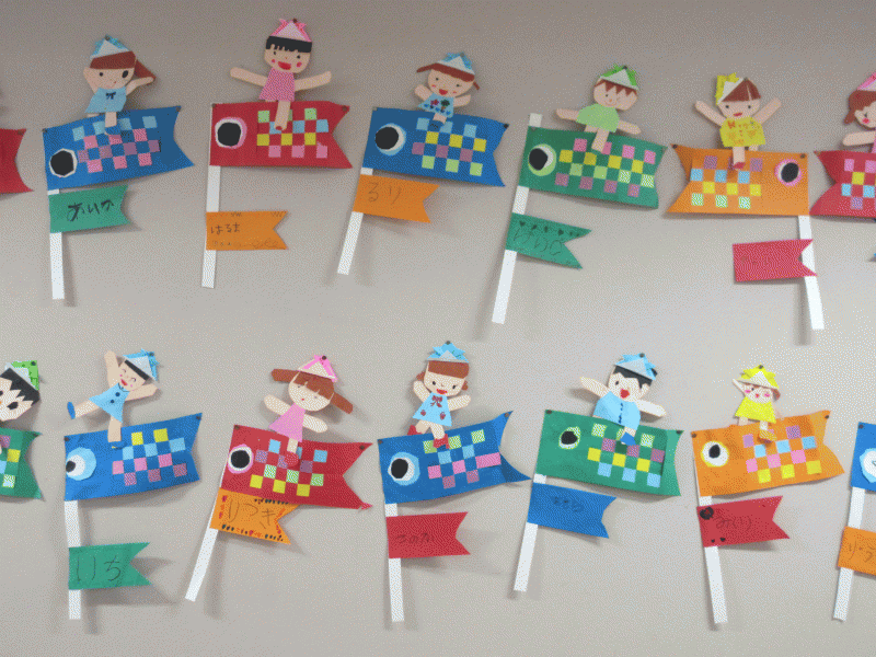 年長組の5月壁面は、こいのぼりに乗った自分を製作しました(*^_^*)