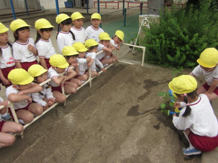 年少組はトマトの苗を植えました!!
