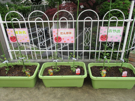 年少組のトマトは、花壇の横で子どもたちと一緒に成長を観察していきたいと思います☆