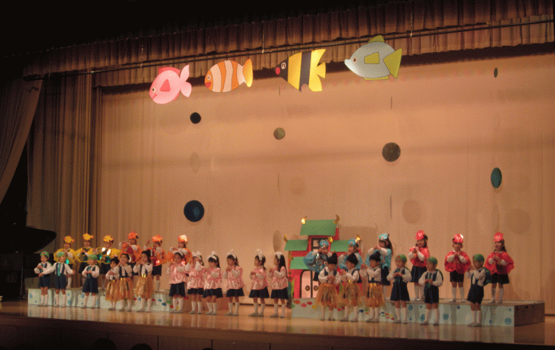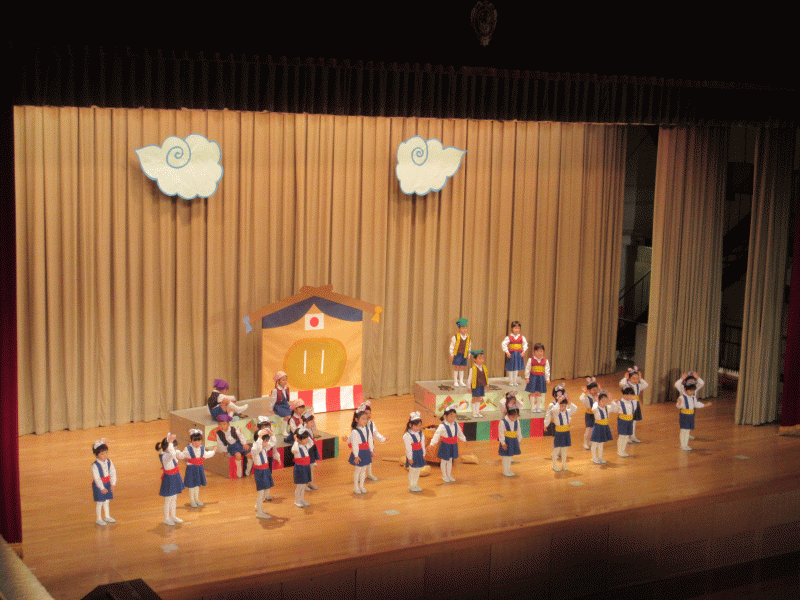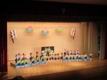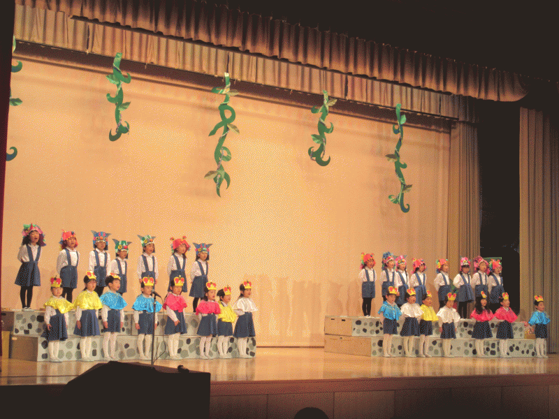 幕が開いた瞬間は、たくさんのお客さんに少し圧倒された様子でしたが、表現するにつれて、子ども達の明るい表情が見られ、友達と心をつないで、楽しく発表をすることができました!!