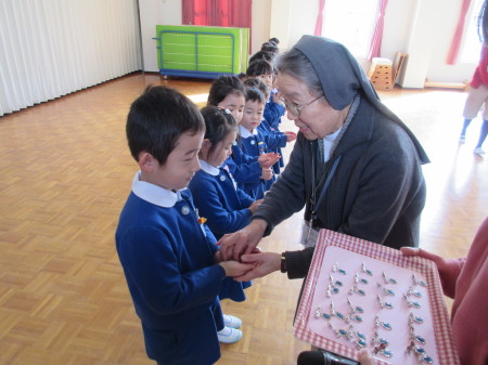 園長先生から、みんな一人一人の心の中に神様がいらっしゃるので、優しい気持ちや頑張る心も全て見守ってくださっているとお話を頂きました。