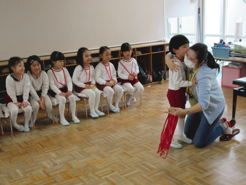 次に、園長先生からキラキラのおメダイをいただきました☆