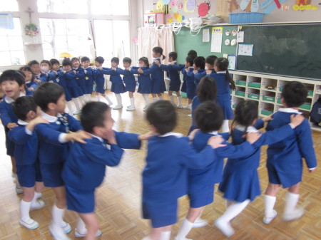 みんなでジャンケンをしながら、グルグル長い電車になりました。