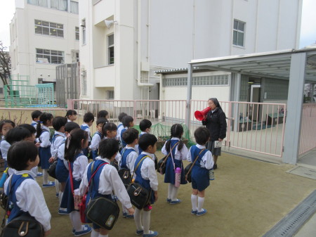 出発前にはお別れ遠足が楽しく、安全なものになるように、先生や園長先生からのお話を聞き、お祈りをしました。