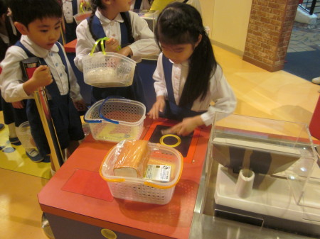 『キッズマート』では、値段を考えてカゴに入れたり、自分でレジを通してレシートを出したり…とお母さんになった気分で楽しんでいたようでした♪