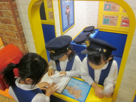 『キッズストリート』で、は郵便屋さんや警察官、お医者さんなど色々なお仕事にチャレンジして、友達と役に分かれて遊んでいました(^^9