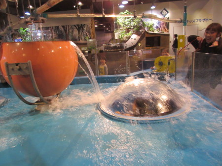 写真にある、ボールが流れてくる仕掛けには、子ども達も釘付けでした☆
