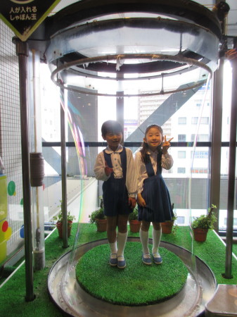 大きなシャボン玉の中に入ってみたり…と、友達と楽しそうに遊んでいました。