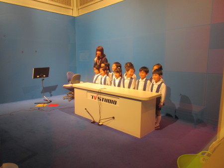 『わいわいスタジオ』では、本当のキャスターになりきって、テレビに映りました!!