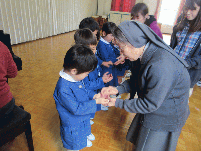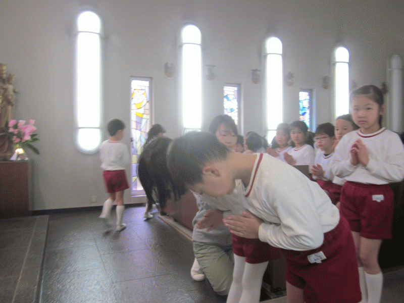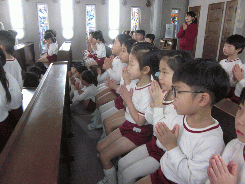 園長先生からは、幼稚園で学んだ神様の話やお祈りを