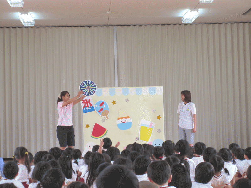 保育者からのプレゼントは、「かき氷くん」のパネルシアターです!