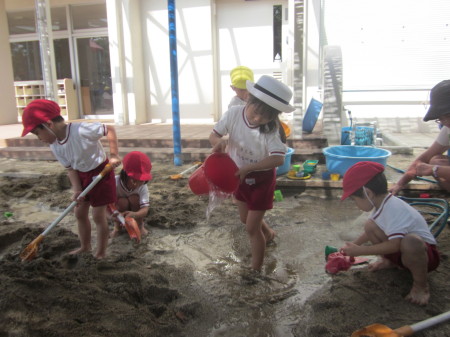 天気の良い青空の下、幼稚園では2学期の始業式が
