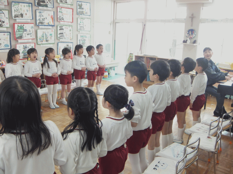 お別れ会を開いてくれてありがとうという気持ち、たくさん遊べて楽しかったよという気持ちなど、今までのたくさんの思い出も込めて歌っていました(^^)