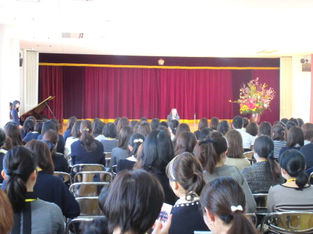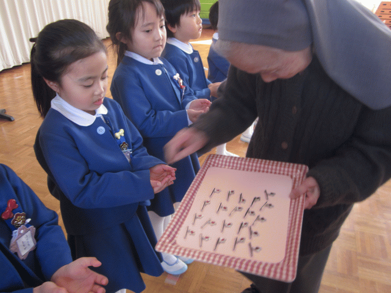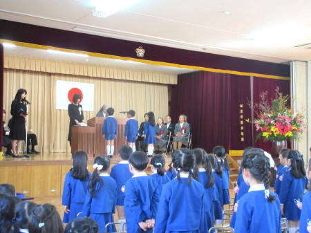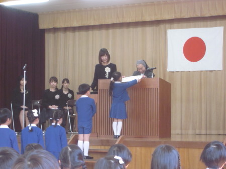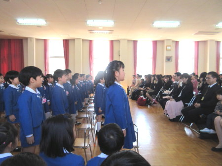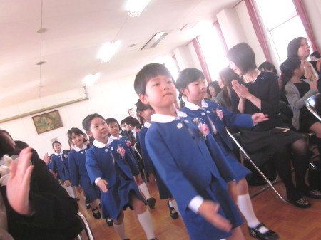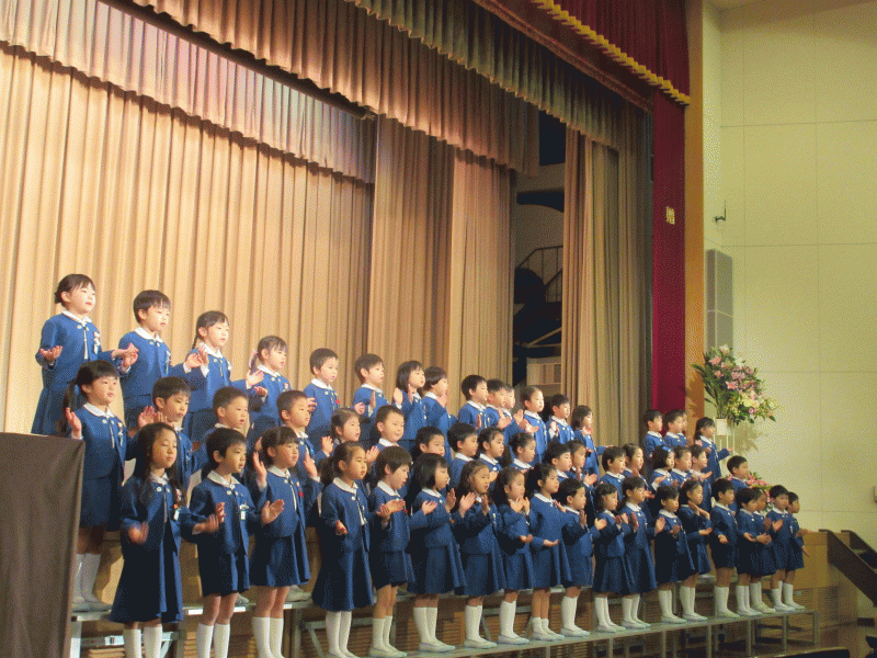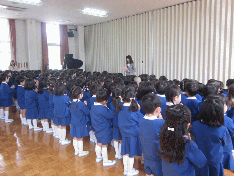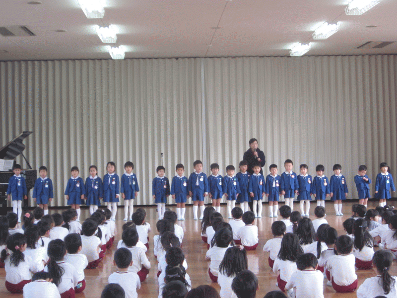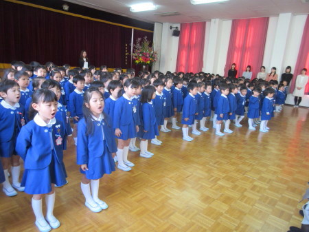 お祈りを静かに聞き、園長先生のお話や、先生の紹介、来賓の方のお話もとても上手に座って聞くことができました。