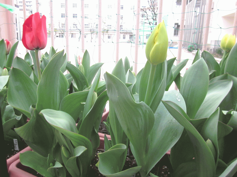 みんなで植えたチューリップが