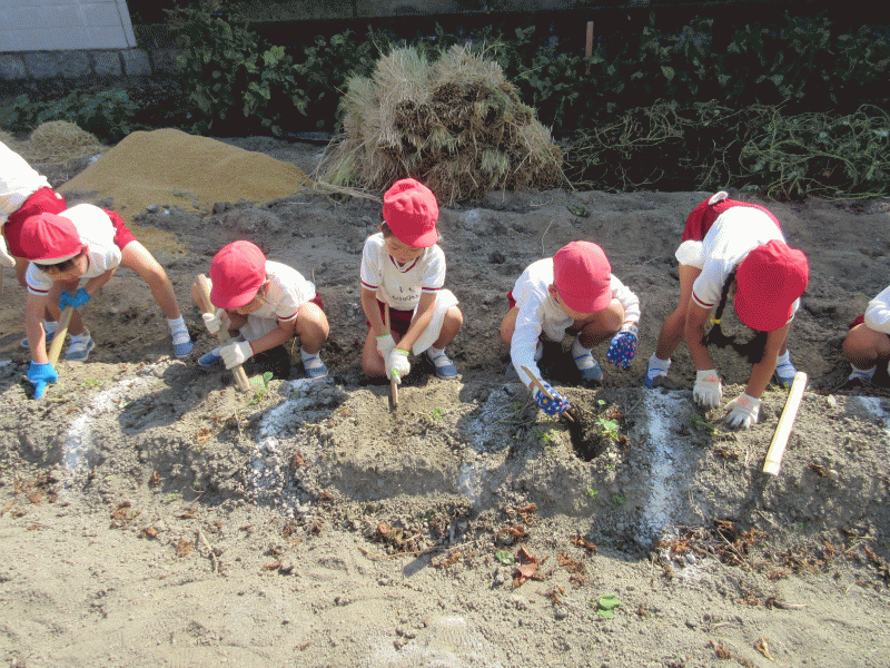 今日は、年長組が楽しみにしていた芋堀り遠足に行って来ました!!