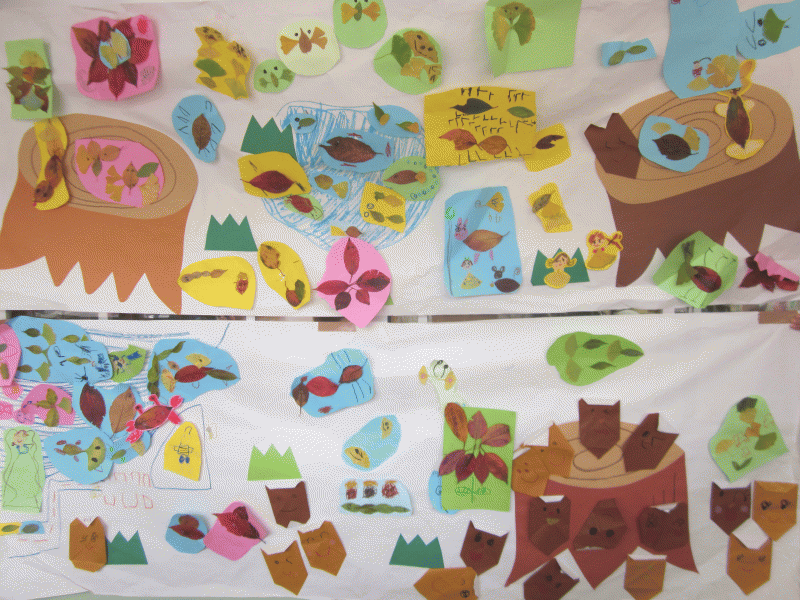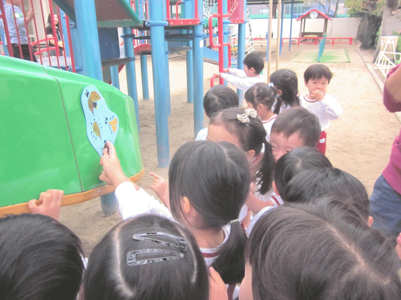 その落ち葉で作られたいきものを探しに、園庭へレッツ・ゴー!!