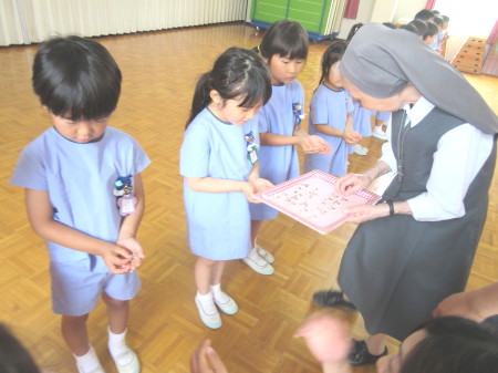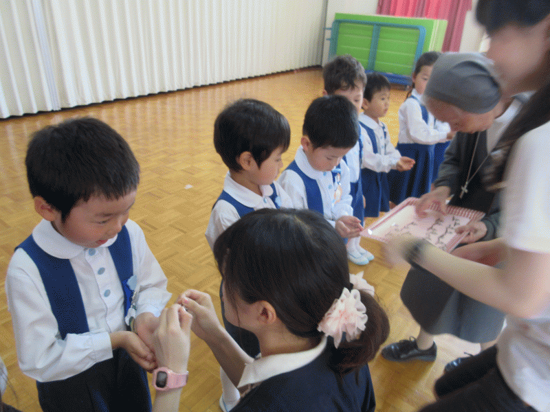 その間、聖歌「うみでおよぐ」を歌って、神様に守ってもらえるようお祈りしました。