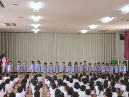 大勢の前に立って、照れながらも嬉しそうな子ども達…♪