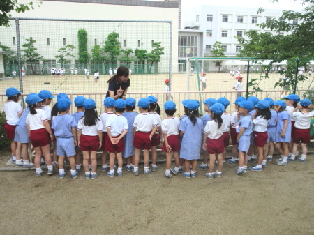 園庭で園長先生からお話を頂き、