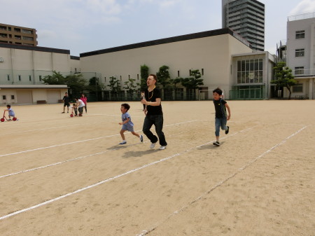 園庭では、いつものように砂場や遊具で