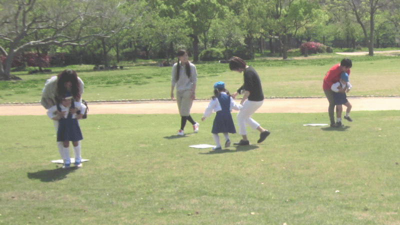 「あと一人!」と指で示しながら、仲間を見つけていたお母様たち。