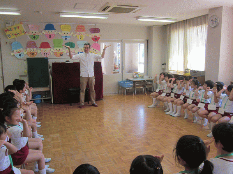 昨年までとは違い、年長組では毎回ネイティブの先生が英語を教えて下さいます!